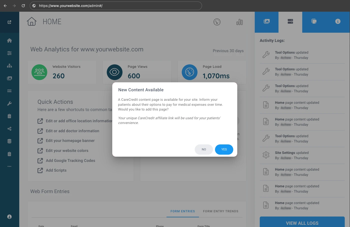 In either case, clicking ‘Yes’ will insert the new page with the CareCredit landing page content.