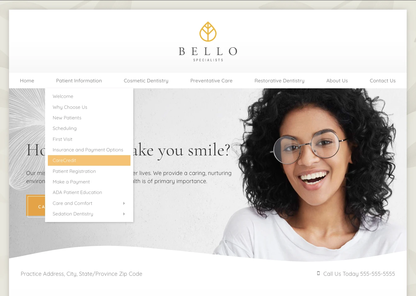 By including a page on the office website with financing options featuring CareCredit, patients can learn more about their options, apply for a CareCredit credit card, and better plan their next visit.